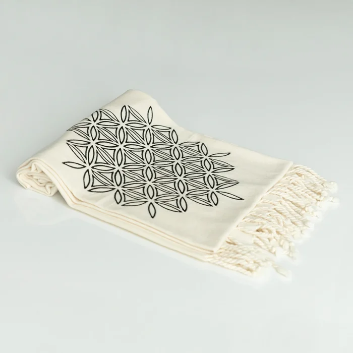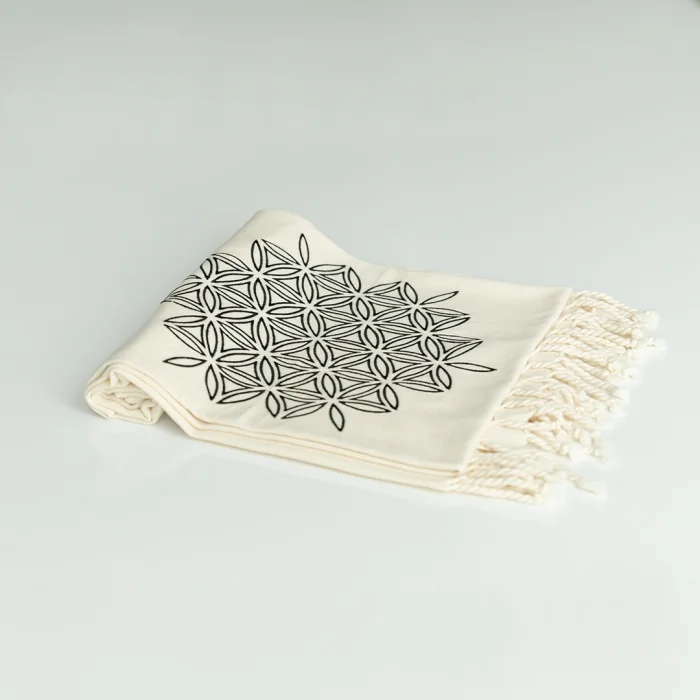 Ortada Yaşam Çiçeği Nakışlı Peştemal