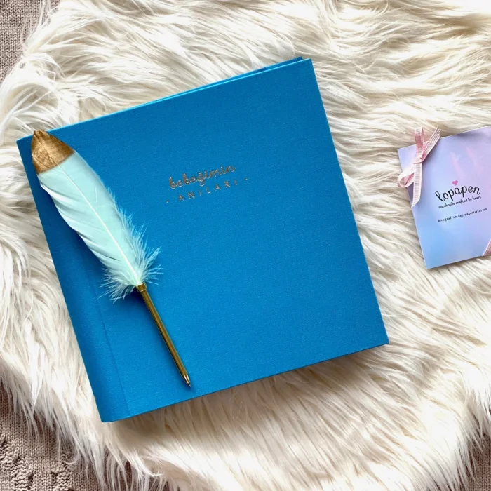 Bu Gök Mavisi Bebek Anı Defterini, 190 gramlık en iyi kalite beyaz kağıt ve gizli spiralli sert kapak ile ürettik. Karakteristik bir kumaşla ve geleneksel yöntemlerle ciltledik. 22 x 22 cm. ölçülerindeki bu anı defteri ve fotoğraf albümü, 70 sayfadan oluşur ve bebeğinizin birinci yılını kendi stilinizde kaydetme olanağı sağlar.