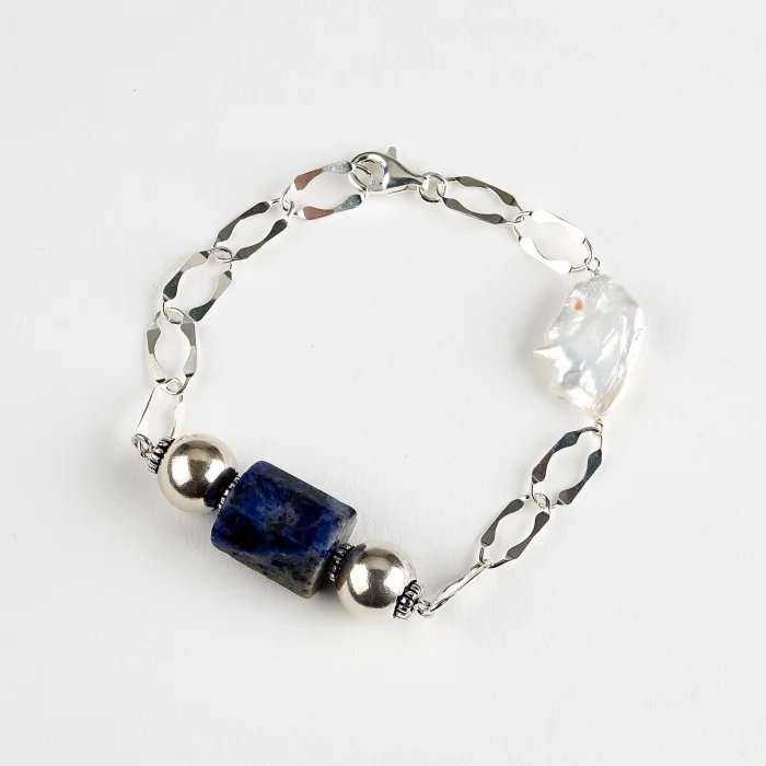 Ürün: Nora Lapis Taşlı Mayorka İnci Detaylı Gümüş Bilezik