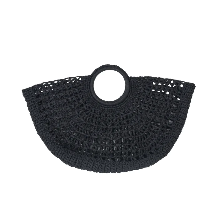 Siyah renk kağıt ip ile %100 el yapımı, file, örme plaj çantası. Derinlik 30 cm, en 50 cm