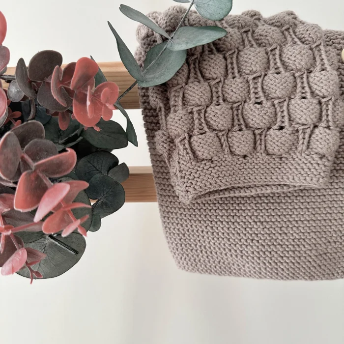 GOTS sertifikalı, %100 organik pamuk ipler ile üretilmiştir. Tamamen el örgüsüdür. %100 pamuk ipler ile örüldüğü için 4 mevsim kullanıma uygundur.