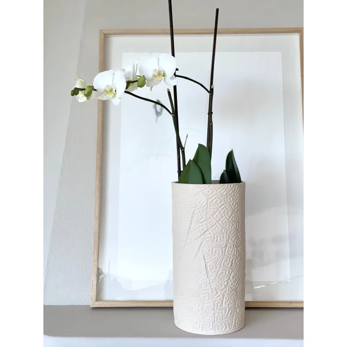 Mythos koleksiyonundan el yapımı stoneware vazo. Geleneksel çömlekçilik teknikleriyle el ile şekillendirme kullanılmaktadır. Bu nedenle boyut, renk ve formda ufak farklılıklar/ olabilir.