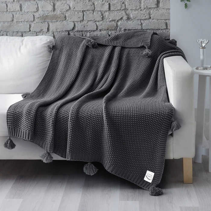 Ürün: Coco Pirinç Örgü Ponponlu Triko Battaniye Koltuk Şalı