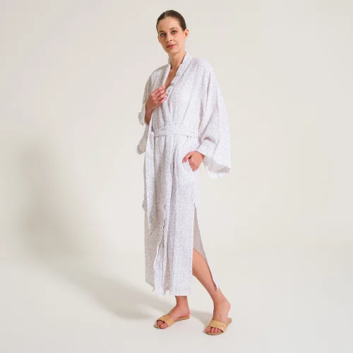 Miespiga kadın kimono bornoz, stilinden vazgeçmeyen ve ev giyimde de modayla iç içe yaşayan hanımlar için tasarlandı. Miespiga müslin kadın bornoz yumuşak dokusu ile rahatlığın yanında sıcacık hissettirir. Nefes alan yapısı ile kadın sabahlık, üzerindeki deniz kabuğu nakış işlemeleri ile de yüzünüzü güldürecek, güne güzel başlamanıza yardımcı olacaktır.