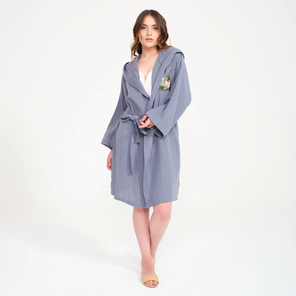 Ürün: Ördek Nakışlı Kısa Kapüşonlu Müslin Kadın Bornoz