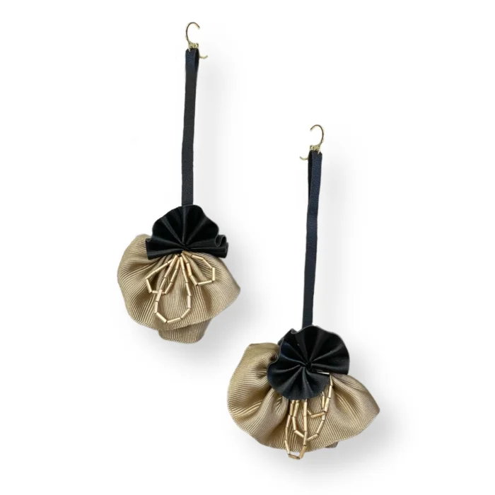 Suni deri, grogren, şerit boncuk ve çelik aparat kullanılarak hazırlanmıştır.