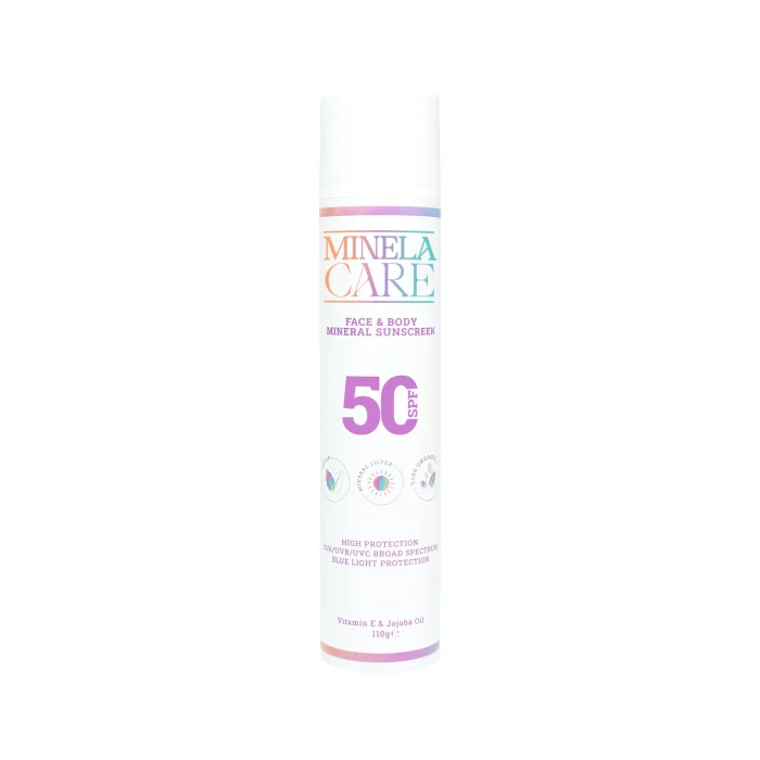 •Geniş spekturumlu UVA/UVB/UVC filtreleri ile ışınlarına karşı güvenle korur. •25% oranında Non-nano çinko oksit içerir (Patentli formül) •100% organiktir. •Vegan sertifikalıdır. •Hipoalerjeniktir. •İçeridiği E Vitamini ile fotoyaşlanmaya karşı koruyucu etki sağlar. •Dermatalojik olarak test edilmis formulu ile ciltle uyumludur ve cilde ışıltı verir. •Icerigindeki jojoba, kalendula gibi bitkisel ozler sayesinde cilt bariyerini güçlendirir, nemlendirir ve yatıştırıcı etki saglar. •Hassas ciltler de dahil tüm cilt tipleri tarafından kullanılabilir. •Etkinliği Avustralyalı kurumlarca kanıtlanan doğal içeriği ile cildinizi korurken deniz yaşamına da zarar vermez, hayvanlar uzerinde test edilmemis ve vegandir. •Gunluk kullanim icin uygundur ve mavi isik korumasi saglar. •Kolay uygulanir ve suya dayanıklıdır. •Yağlı bir his ve beyaz iz bırakmaz. •Avustralyada üretilmiştir. Minela Care Organik Mineral Filtreli Yüz ve Vücut Güneş Kremi SPF 50 110gr İçeriği: Zinc Oxide, Aqua, Helianthus annuus Seed Oil, Simmondsia chinensis Seed Oil, Glycerin, Candelilla Cera, Xanthan Gum, Polyhydroxystearic Acid, Polyglyceryl-3 Polyricinoleate, Tocopherol, Calendula Officinalis Extract, Maltodextrin, Potassium Cetyl Phosphate, Sodium Chloride, Citrus Paradisi Peel Oil, Cocos Nucifera Oil, Thuja plicata Leaf Extract, CI 77499, CI 77491, CI 77492.