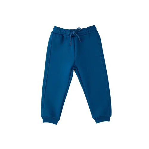 Miniliq'e özel Bubble Blue renginde, standart kalıptan,beli lastikli ve kordonlu, arka cep detaylı, paça kısmı ribanalı, şardonlu eşofman altı.
