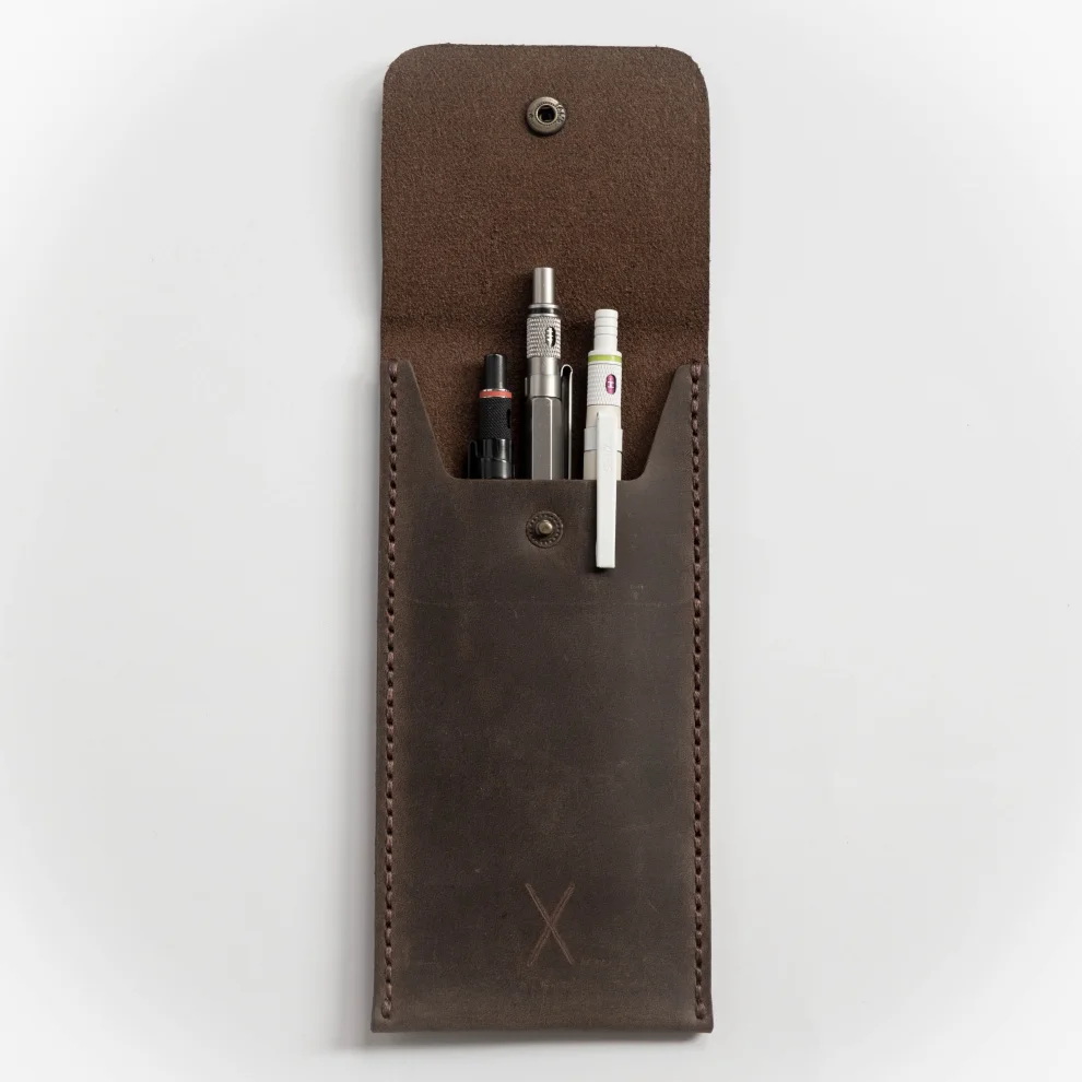 minimal X Deri Kalemlik Gerçek deri, minimalist ve şık tasarımlı kalemlik 5 kalem kapasiteli, Kapaklı tasarım (çıt çıtlı). Materyal: Hakiki Dana Derisi Kapalı Ölçüleri: 17 x 8 cm Deri Kalınlığı: 1.3 - 1.4 mm Ürün Ağırlığı: 40 Gram Minimalist ve Şık Tasarım. Gerçek deri ve el yapımıdır. Ürünlerimiz standart olarak hediye paketi yapılarak gönderilmektedir. NOT: Gerçek deri olduğu için hafif renk tonu farklılıkları olabilmektedir. NOT2: Deri Kalemlik dışındaki ürünler ve kalemler görsel dekor amaçlı kullanılmıştır dahil değildir.