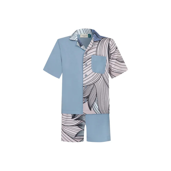 Hem şık hem de rahat olmak isteyen küçük beyler için özgün bir tasarımdır. Takıma ait şortun kumaşı Lyocell; huş ağacı, meşe veya okaliptus gibi bitkilerin odun hamuru selülozundan elde edilen sürdürülebilir / ekolojik bir türdür. Antibakteriyel bu kumaş, dökümlü yapısıyla yumuşacık ve iyi hissettiren bir dokudadır. Hem çevre hem de cilt dostu olmasıyla devrimsel etki yaratmıştır. Malzeme: Gömlek: %100 Pamuk. Şort: %100 Pamuk