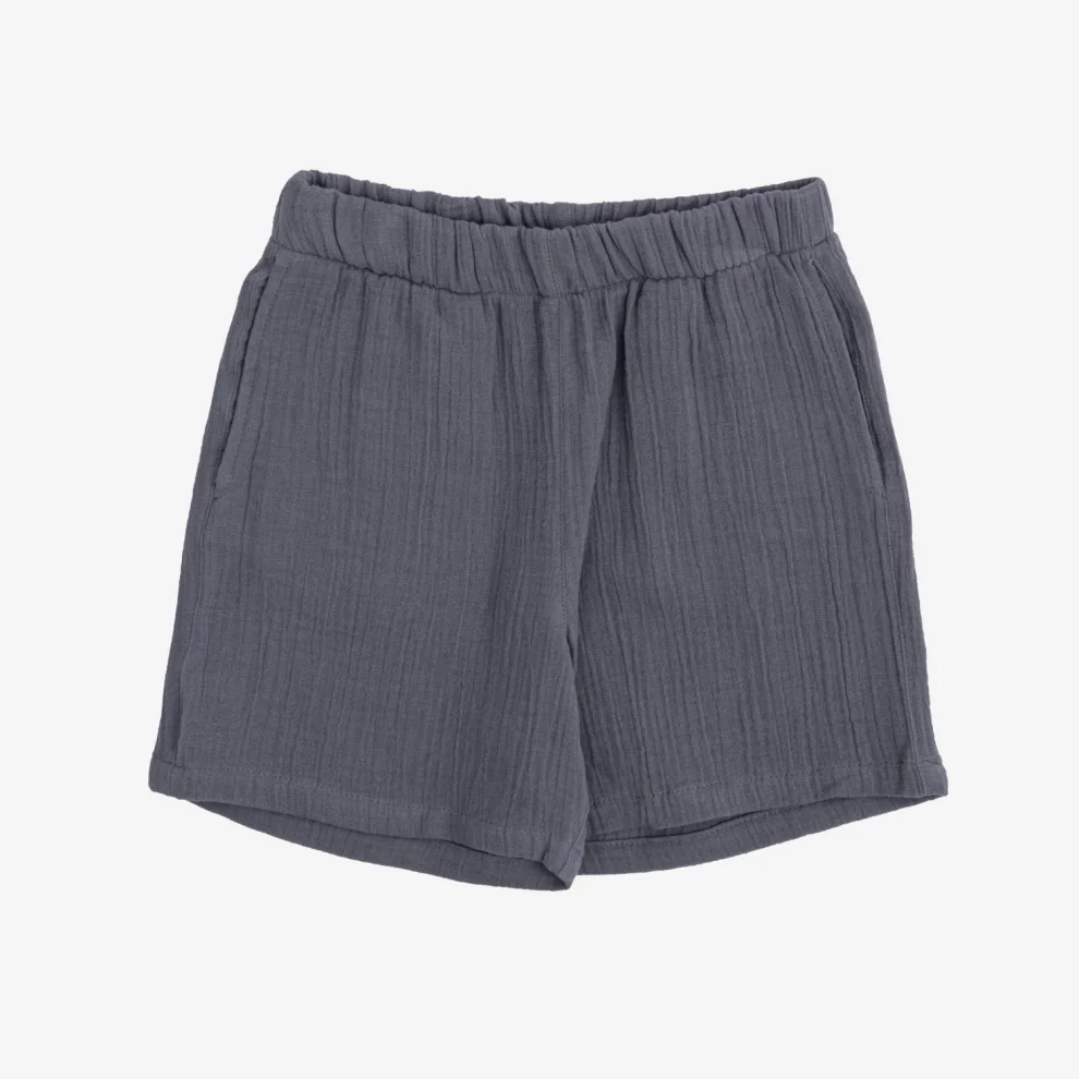 Nate Koyu Gri Erkek Çocuk Muslin Şort, koyu gri renkli çocuk şortu, stil ve rahatlık arayan ebeveynler için mükemmel bir seçenektir. %100 pamuk müslin kumaşıyla üretilmiş olan bu şort, çocuğunuzun gün boyu rahat etmesini sağlar. Hem günlük kullanıma uygun hem de özel günlerde şıklık katmak için idealdir. 3-12 yaş aralığındaki çocuklar için tasarlanmış olan bu şort, dayanıklı yapısıyla uzun süre kullanılabilir. Kaliteli malzemesi ve cepli tasarımıyla pratik bir seçenektir