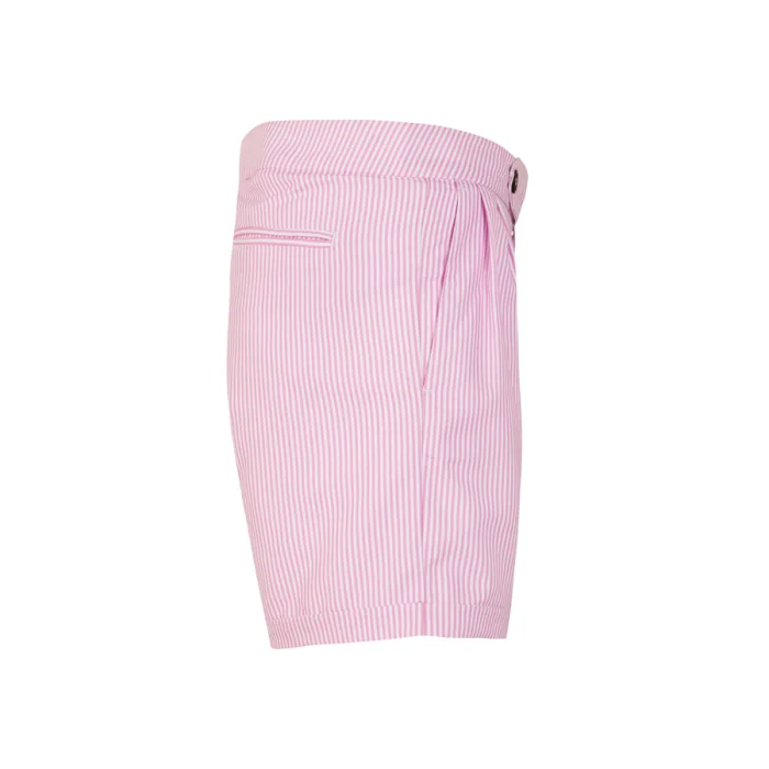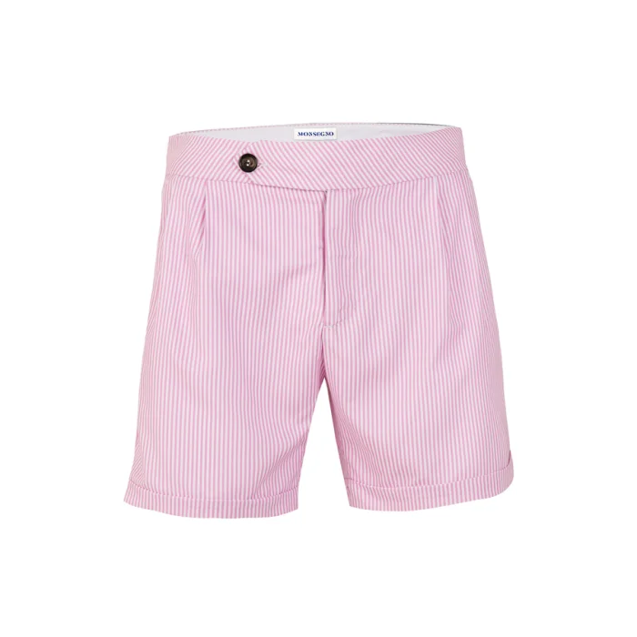 Çift pileli, duble paçalı kalın düz kemerli klasik deniz şortu, 2 adet yan cep, 1 adet filetolu arka cep.