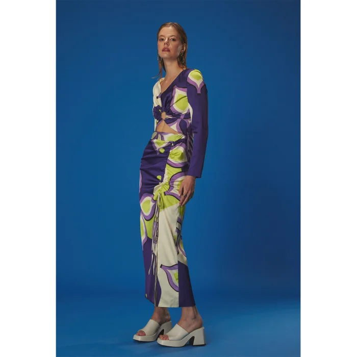 Mox deseniyle yaz ruhunu yaşayın. Büzgülü yırtmaçlı, vatkalı desenli elbise. Teslim süresi 5 gündür. Model 36 beden giyiyor. Model vücut ölçüleri 86-68-94.