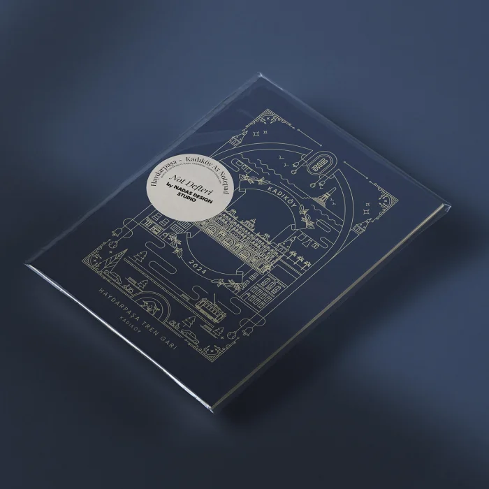 İç sayfaları ve dış kapak tasarımı özel olarak Kadıköy yılbaşı temasında çizilmiştir. A5 boyutunda, çizgisiz, 40 sayfa, zımbalı defter,
