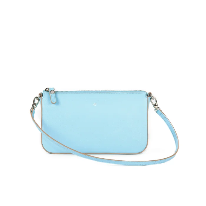 100% dana derisidir, el işçiliği ile üretilmiştir. 2 adet takıp çıkarılabilir, deri ve zincir askı seçeneği mevcuttur. İç yüzde 1 adet fermuarlı cep ve diğer yüzde 2’li kartlık bölümüne sahiptir. Gümüş rengi metal aksesuar kullanılmıştır.