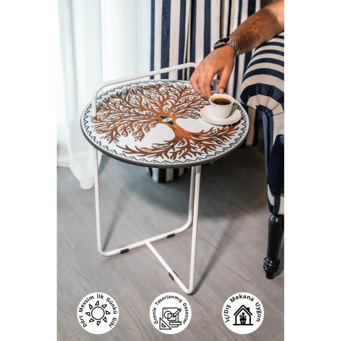Ürün: Hayat Ağacı Desenli İç Ve Dış Mekan Yan Sehpa