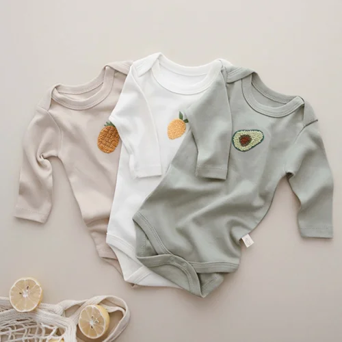 Ürün: Meyve Desenli Nakışlı Çıt Çıtlı Uzun Kollu Body Zıbın 3'lü