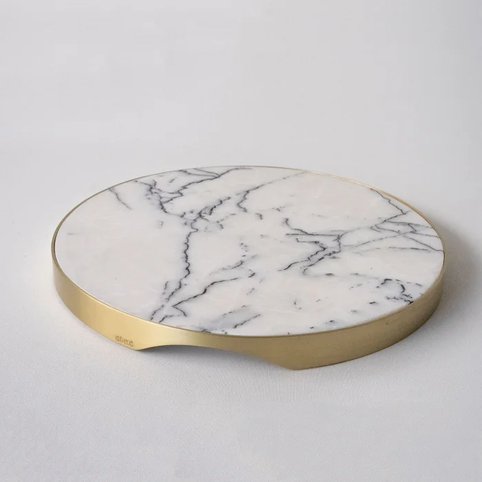 - Ham pirinç, ısı ve neme maruz kaldığında okside olabilen bakır ve çinko gibi ham metaller içeren bir malzemedir. Bu, organik yaşlanma sürecinin bir parçasıdır ve bir kusur olarak addedilemez. Her pirinç çerçeve ve mermer el yapımıdır, bu nedenle kaplama, doku damar ve boyutlandırmada küçük farklılıklar gösterebilir.