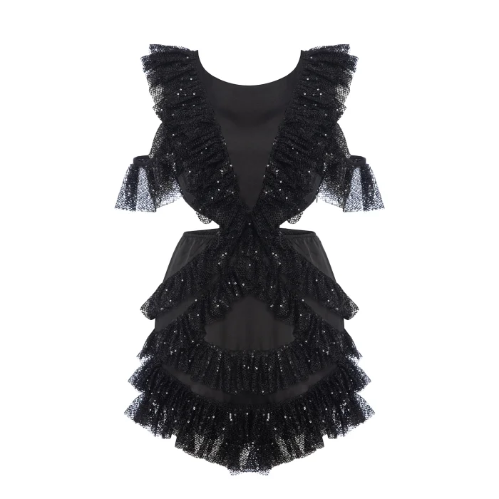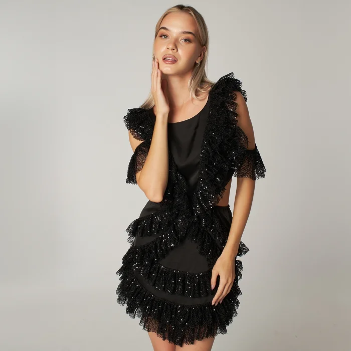 Ürün: Pullu Fırfırlı Mini Elbise Viva