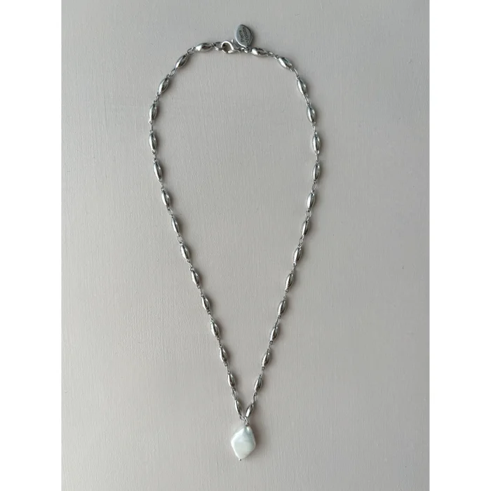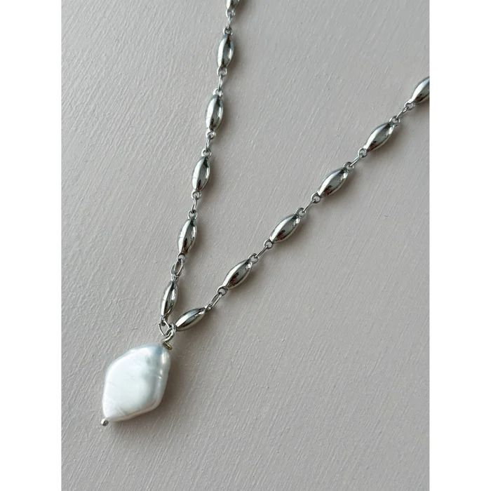 Materyal Bilgisi: Rodyum kaplama materyaller ile birlikte orijinal Barok İnci kullanılmıştır . Ölçü : Kolye uzunluğu 40 cm'dir.