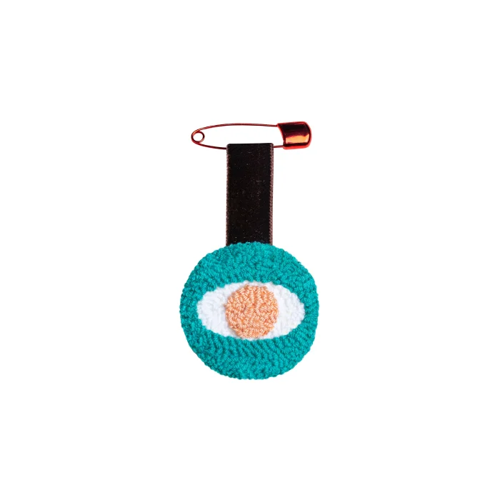 Punch tekniği ile üretilmiş kendi renkleri ile uyumlu kadife askı ve çengelli iğneden oluşan 5,5 cm çapında madalyon.