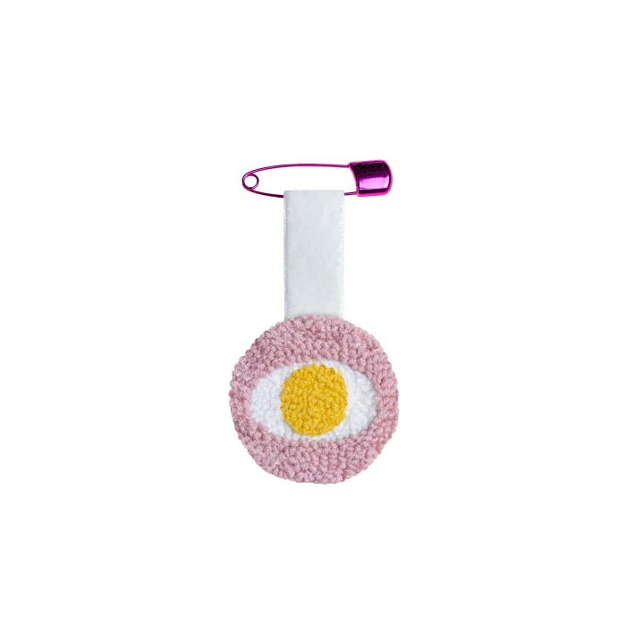 Punch tekniği ile üretilmiş kendi renkleri ile uyumlu kadife askı ve çengelli iğneden oluşan 5,5 cm çapında madalyon.
