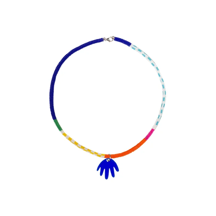 Kolye kısmı koleksiyonun diğer renkleriyle uyumlu boncuklardan el işçiliği ile hazırlanmıştır.
