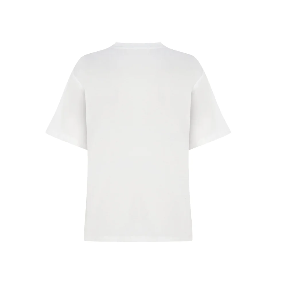 yumuşak tuşeli, siyah nakışlı oversize / bol kesim kadın tshirt