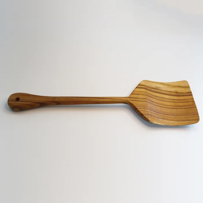 Tik ağacı spatula, el yapımıdır. Kalın saplı ve geniş servis alanına sahiptir. Doğal ahşaptan yapıldığı için renk ve formunda küçük farklılıklar oluşabilir.