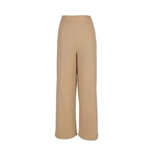 Nar kabuğu ve akasya ile doğal boyanmış boru paça uzun pantolon. Yüksek belli ve lastikli.