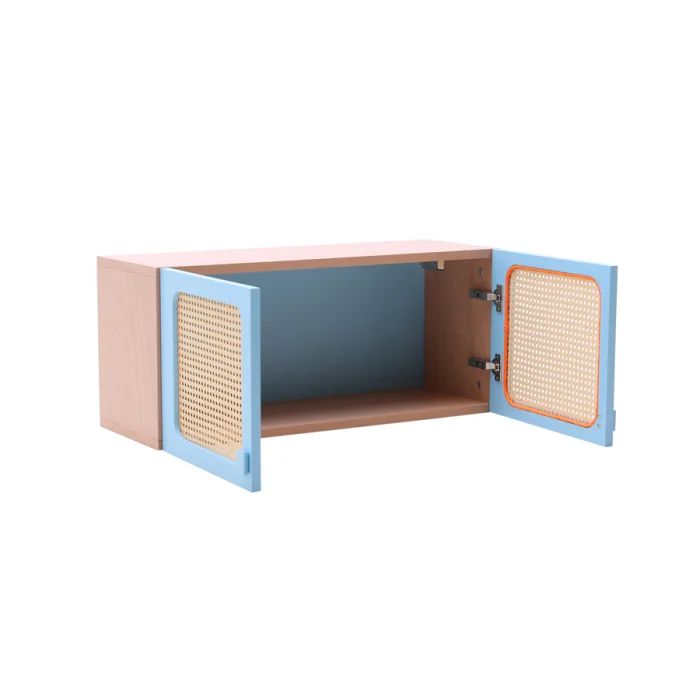 İki kapaklı bir kitaplıktır. Kapaklarda rattan detaylar kullanılmıştır.