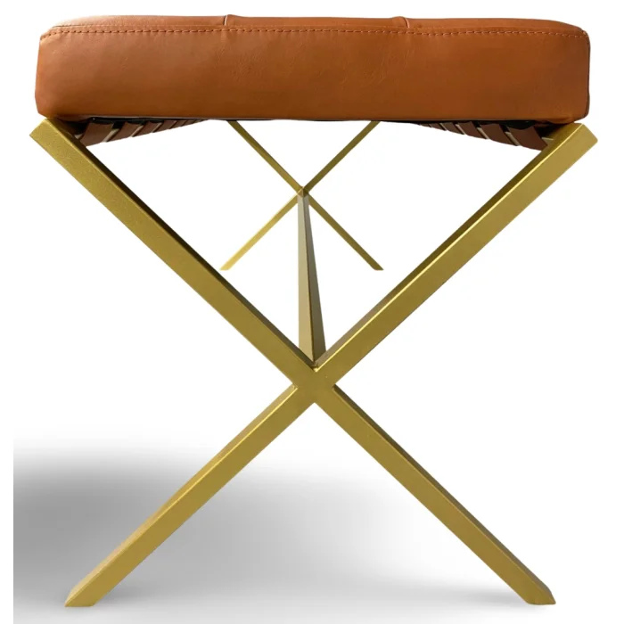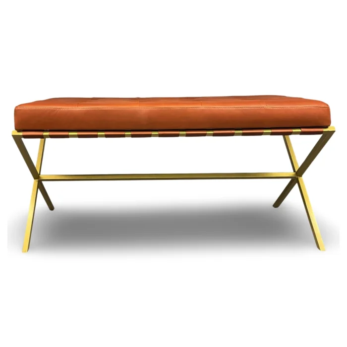 Ürünün iskeleti fırın boyalı gold metaldir. Oturum minderi gerçek deridir. Minderde 32 DNS sünger kullanılmıştır. 43*110*43 cm ölçülerindedir.
