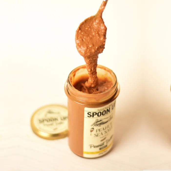 Çifte kavrulmuş taze yerfıstığı ezmesi,yoğun ve parçacıklı yapıda...