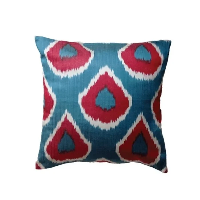 Özbekistanda üretilen ikat ipek kumaş Studio Mikael Paris tarafından tasarlanarak evlerinizin ikonik parçasi olmak için hazır. Çift tarafli olarak kullanilabilir iki tarafı da ipek kumaştan tasarlanmıştir.İç dolgusu 100% elyaftır. El ile doldurulmuştur. Gizli fermuarlıdır.