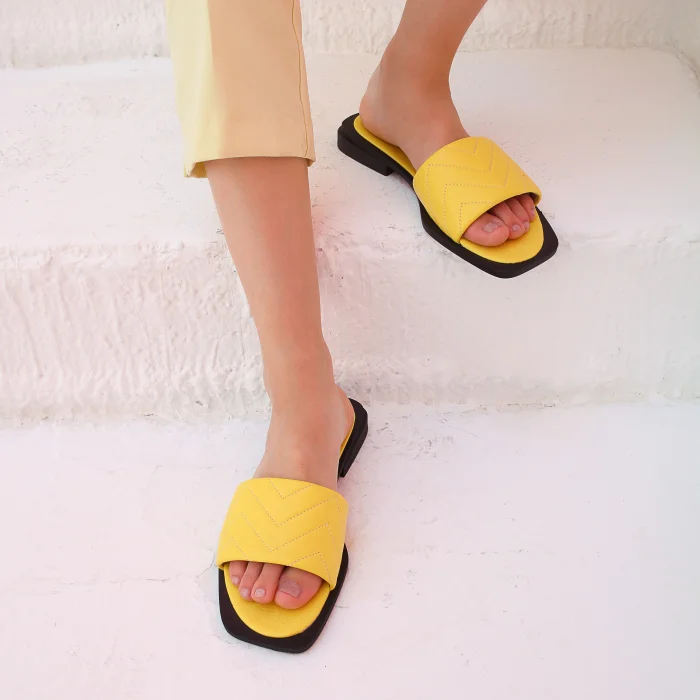 - %100 gerçek deri zikzak detaylı terlik