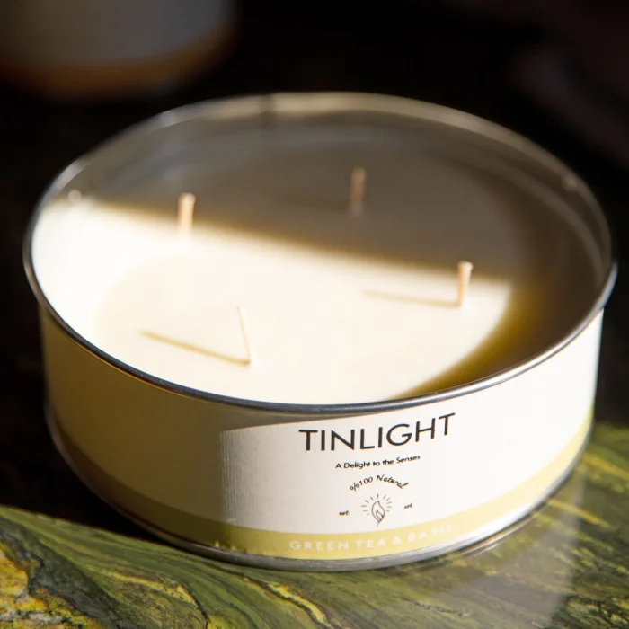 TINLIGHT GREEN TEA&BASIL, yeşil çay ve fesleğenin mükemmel birleşiminden oluşan 100% doğal bir mumdur. Yüksek kalite parfüm yağları, soya ve bal mumu içerir.