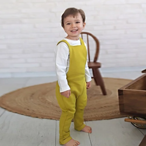 Bacak kısmı düğmesiz/çıtçıtsız olarak tasarlanmıştır. Böylece çıtçıtların arasından soğuk hava gelmemiş olur. Seçtiğiniz bu tulumu tombul bacaklı bebekler de kış aylarında rahatça giyebilir. Arkadan tek düğme ile ayarlanabilir askıları bağlanır. Bez değişiminde tek düğme ile kolaylık sağlanır. Yumuşacık ve kalın kumaşlıdır.