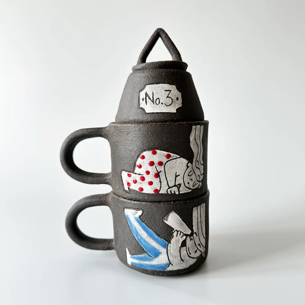 STONEWARE ELLE ŞEKİLLENDİRME VE BOYAMA 2 Lİ BARDAK VE ŞEKERLİK SETİ (SGRAFFITO TEKNİĞİ )
