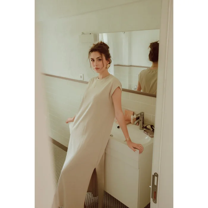 Ürün: Ting Pamuklu Yırtmaçlı Oversize Maxi Elbise