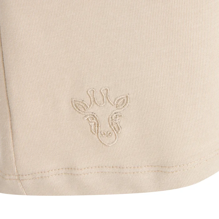 Sol yandan derin yırtmaçlı, Etek ucunda zürafa logosu işlemeli