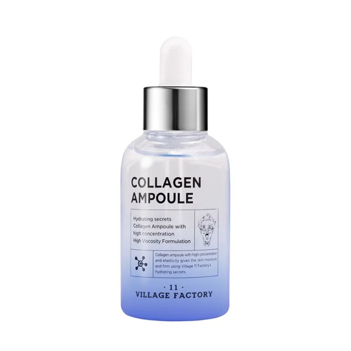 Village 11 Factory Collagen Ampoule, içerdiği hidrolize kolajen ile daha canlı ve sağlıklı görünen bir cilt elde edilmesine yardımcı olur. Hidrolize kolajen ve limon otu yaprağı özü ile geliştirilen formül cildi nemlendirir ve nemini uzun süre boyunca korumasını sağlar. Hafif ancak besleyici dokusu, zayıf düşmüş cildin canlılık kazanması için çalışır. Cildin güçlenmesine yardımcı olur ve cilde gün boyunca devam eden bir nem ve ışıltı katar. Hidrolize kolajen cildi nemlendirir, daha dolgun, elastikiyeti yüksek, ince çizgi ve kırışıklıklara karşı savaşan ve cildin kolajen üretimini destekleyen bir sonuç sağlar. Sodyum hyaluronat cildi nemlendirir ve kurumaya karşı korur. Trehaloz cildi nemli ve yumuşak tutmaya yardımcı olur. Pantenol ise cildi nemlendirir, besler ve korur.