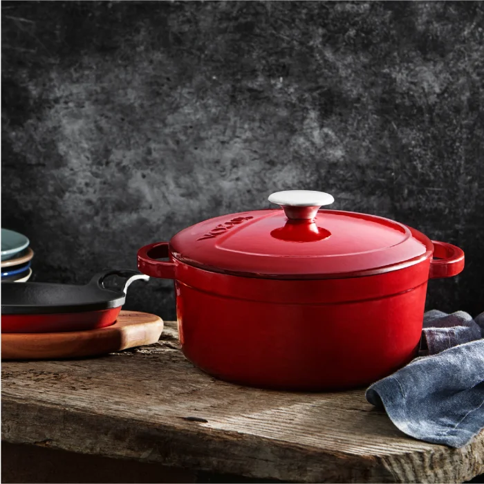 %100 demir döküm olan Voeux tencereniz, ısıyı eşit miktarda yayma özelliği ile yemekleriniz kendi suyuyla pişerken tüm vitamin, mineral ve lif değerlerini korur.