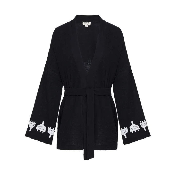 Ürün: Müslin Kısa Göz Baskı Detaylı Kimono