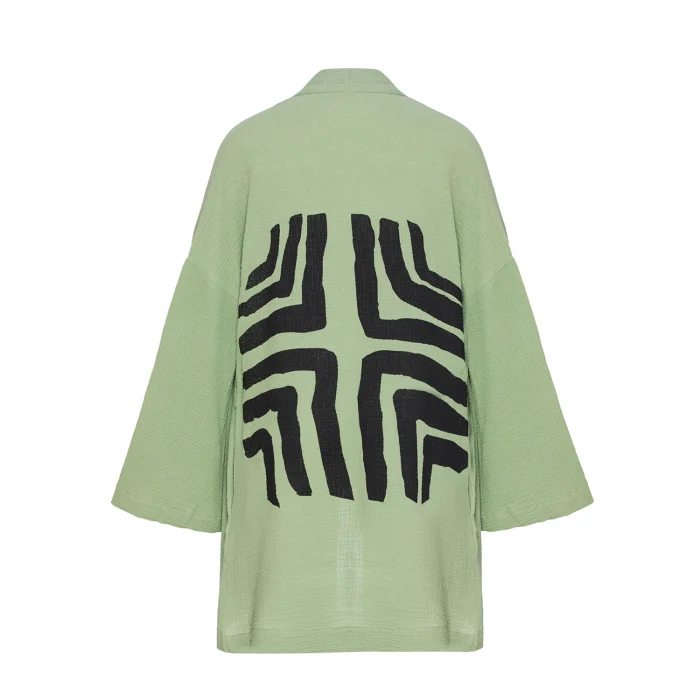 Ürün: Müslin Kısa Labirent Baskı Detaylı Kimono