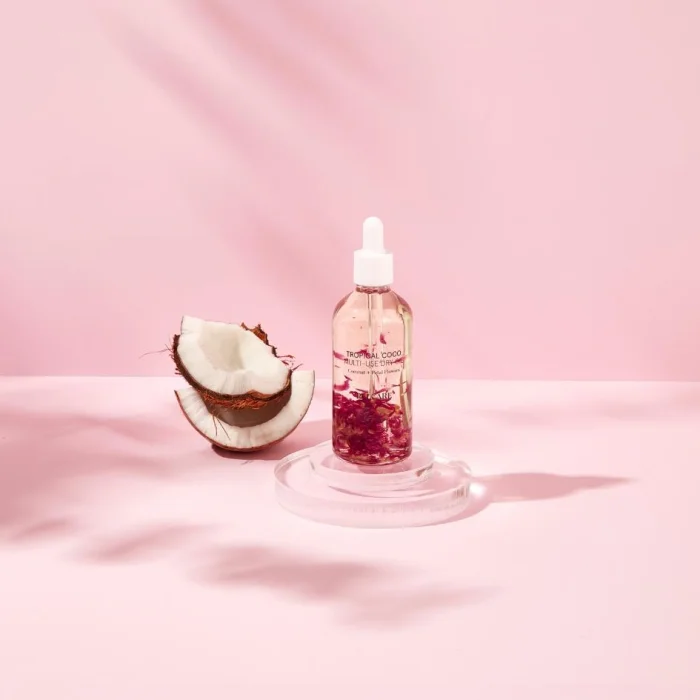 This floral-infused dry body oil is blended with highly instense organic cold-pressed coconut oil, natural nourishing oils and nurturing Vitamin E. Use it on your skin, hair and even your nails for moisture + shine!It will dry fast! You'll be left with radiantly hydrated, glowing skin + hair that smells beautifully fresh.