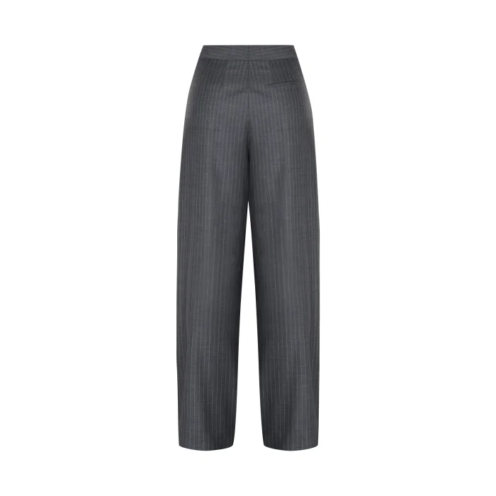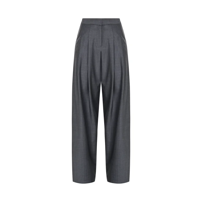 Woolen brick-colored trousers. Concealed rack and zipper closure. The front is double pleated. Loose fit. Her height is at heel level.