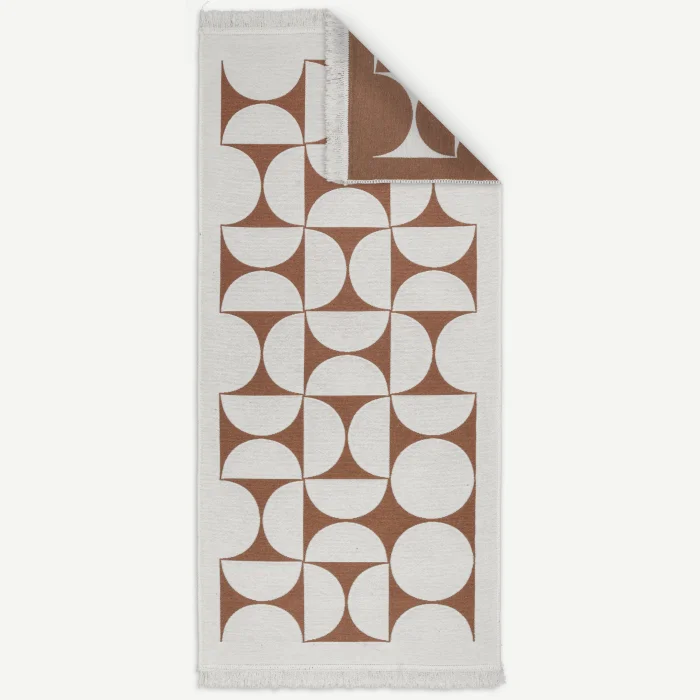 Machine-woven reversible rug from recycled cotton.