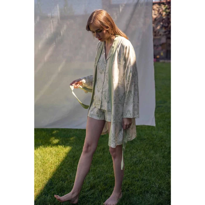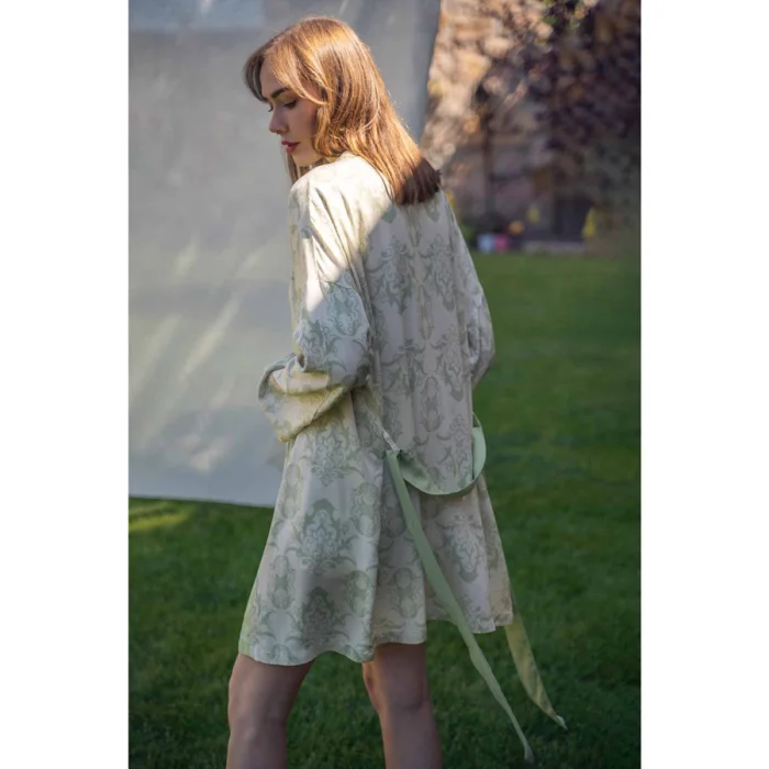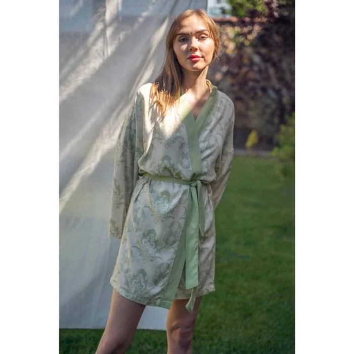 Regular fit, model is off shoulder. The belt of the kimono is tied with a belt at the waist. 100% Belmando Viscose Fabric, produced in Turkey.