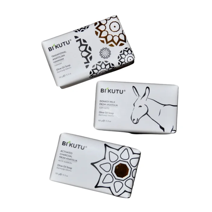 Tamamen el yapımı 3 ayrı sabun. Geleneksel Türk hamamı sabunu. Eşek sütü sabunu. Aktif karbon sabunu
