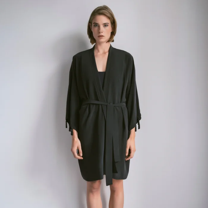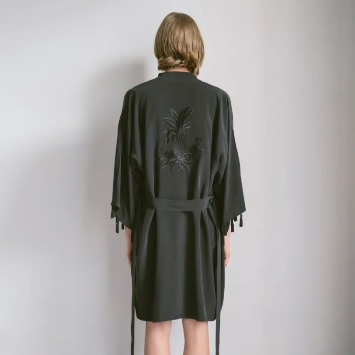 Product: Black Pineapple Silk Kimono